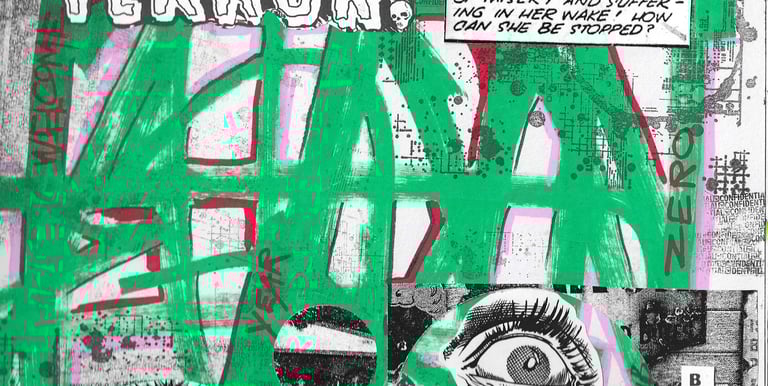 Sarah Calavera is a UK‑based graphic artist, printmaker, and creative explorer known for her bold fusion of gothic aesthetics, neon colour palettes, and retro pop culture influences.